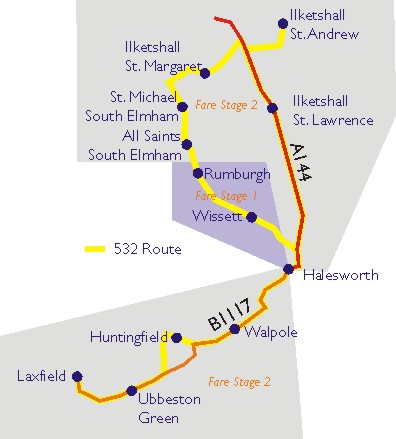 532 Route plan fare stages small